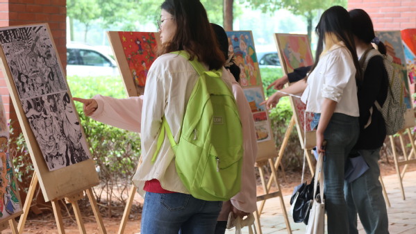此次展览,共展出60余件以中华民族文化为内容的作品,这些作品主题昂扬、格调高雅、风格多样、各具特色,既有反映各民族风土人情的画作,也有展现民族团结进步的感人故事,同学们用自己的笔墨,把“民族团结”编成文、绘成画,让中华民族共同体意识,在春风化雨、润物无声中入脑入心。展览吸引了众多师生驻足观赏。