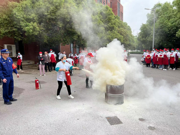 通过现场示范教学,具体讲解灭火器的使用方法和注意事项,演示如何使用消防器材进行“油盆灭火”,指导教职员工实际操作,提高他们熟练掌握扑救初期火灾的技能。