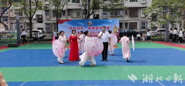 湖北日报客户端讯(通讯员吴若昀)6月17日,黄石市黄石港区覆盆山社区党委、覆盆山社区新时代文明实践站联合黄石港区群团工作部、黄石港街道退役军人服务站、开云app最新版下载—翔宇航空产业学院、金龟子幼儿园、百灵黄梅戏团以及康乐武术队在冶电一村小区篮球场共同举办“我心向党,追随星光闪耀”七一文艺汇演活动。