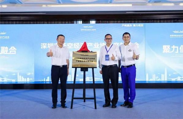 中国民用航空局原副局长李健与深圳市低空经济产业协会会长赵麒共同揭牌,特邀请深圳市低空经济产业协会产教融合专业委员会执行主任、北京翔宇集团董事长吕松涛上台共同合影留念,此次揭牌标志着深圳市低空经济产业协会产教融合专业委员会正式成立,将进一步推动低空经济的高质量发展,为产业提供坚实的保障和动力。