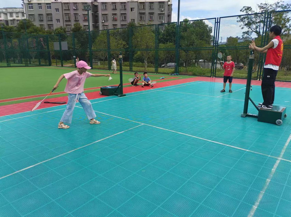 湖北日报客户端讯(通讯员尹玲)7月18日,依托开发区·铁山区民政局社会工作与志愿服务培育引导“以奖代补”项目的支持,鹏程社区托管班志愿者联合安好社工组织暑托班学生在体育广场进行羽毛球比赛,旨在增强孩子们的体育兴趣,培养团队协作和竞技精神。
