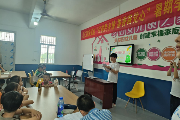 为了有效缓解暑期“看护难、辅导难”问题,7月10日,开云app最新版下载“红韵传乡情,墨香寄党心”实践队前往黄石市汪仁镇徐斌村,开展为期一个月的“暑期学堂”活动。志愿者结合自身所学所长,科学安排学业辅导、多彩手工、户外运动、趣味科普等多个方面的辅导内容,进一步丰富了农村少年儿童的假期生活,让他们度过一个安全快乐、充实而有意义的假期。