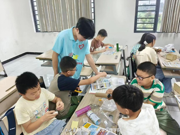 除基础学科的教学以外,志愿者还十分重视对学生综合素质的培养。手工课上,志愿者和学生一起体验制作手工艺品的过程,培养学生的创造力和想象力,有助于提高学生的动手能力和手眼协调能力。
