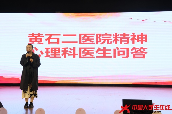 汇演现场,黄石市第二医院精神科医生与师生开展互动,回答师生常见心理问题。