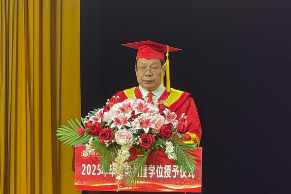 穗转冠正,逐光前行。部分学生代表向母校汇报行程,表达了对母校的感谢和未来的憧憬。杨邓红为2025届毕业生们送上深情的寄语和美好的祝福。学位评定委员会委员为2025届毕业生代表完成拨穗仪式,并授予学位证书。