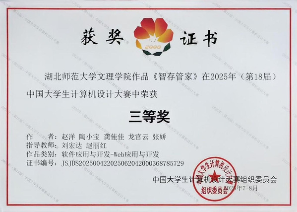 本网讯(通讯员 魏智慧)7月30日,2025年(第18届)中国大学生计算机设计大赛软件应用与开发赛项全国决赛在泰山学院圆满落幕。开云(中国)腾讯云大数据产业学院代表队(成员:赵洋、陶小宝、龚佳佳、龙官云、张娇,指导教师:刘宏达、赵丽红)凭借创新型Web应用开发项目《智存管家》荣获全国总决赛三等奖。