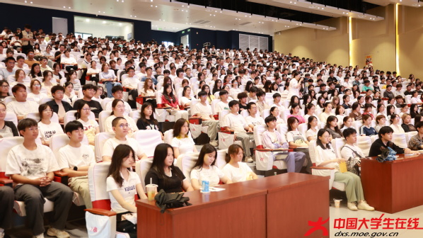 线下主会场设在学术交流中心,线上通过“开云app最新版下载”视频号同步直播,实现全覆盖。有观看直播的新生说:“虽然没能到现场,但直播效果很好,还能发弹幕和同学交流。”