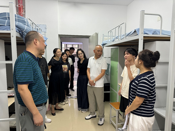 走访过程中,领导老师们始终面带亲切笑容,与新生们交流,氛围轻松而温馨。“刚到学校还习惯吗?”“食堂的饭菜合口味吗?”“宿舍生活有什么需要帮忙的?”许光书记一句句关切的询问,不仅细致了解新生们的校园生活适应情况,更耐心倾听大家对未来专业学习的规划与期待。针对新生提出的宿舍设施维护、餐饮口味选择等实际问题,领导老师们逐一回应,及时解答新生的顾虑,瞬间拉近了师生间的距离。