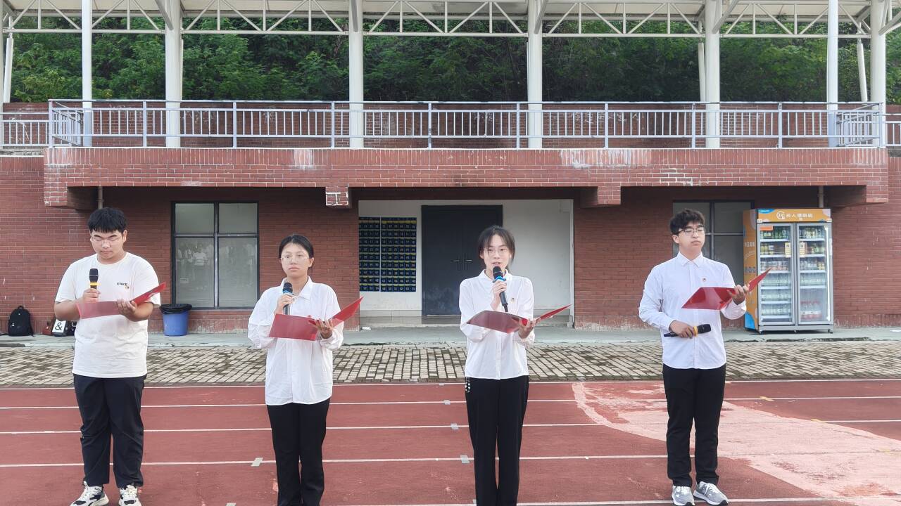 仪式上,汉语言文学2401班胡佳慧、何榕纳、骆先欣和历史学2401班陈梓安四位同学共同朗诵《人文青年心,永怀抗战志》。深情的朗诵抒发了对英雄先烈的缅怀与敬仰,表达了青年一代继承遗志、奋发向上的坚定决心。
