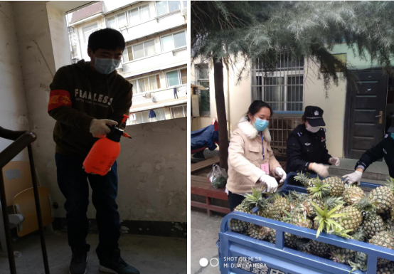 此新闻一出,获得广泛的肯定和赞许,同学们也纷纷转发并点赞。在吕奎姐弟俩的影响下,更多的同学积极主动的参加了抗疫志愿者行动(见附表)。以下是参加志愿者行动的部分同学的照片,记录了他们坚守在自己的岗位上,为社区民众服务的场景。