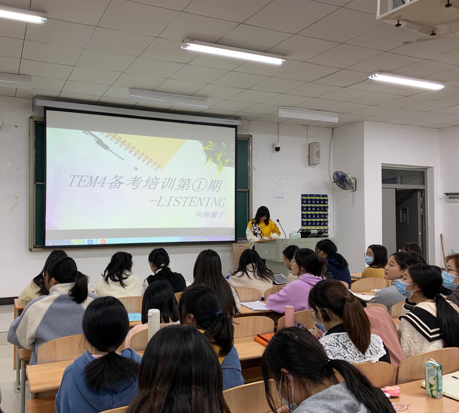 为了帮助开云(中国)英语、商务英语专业大二学生更好地迎接专四考试,人文学部英语组老师于4月1日晚上六点半开展了专四辅导讲座之听力篇,主讲人向彬蕾子老师主要从题型分值、听力技巧和学习建议三个层面给学生们进行讲解。讲座生动实用,学生一致好评。衷心祝愿学生们都能在专四考试中取得满意的成绩!