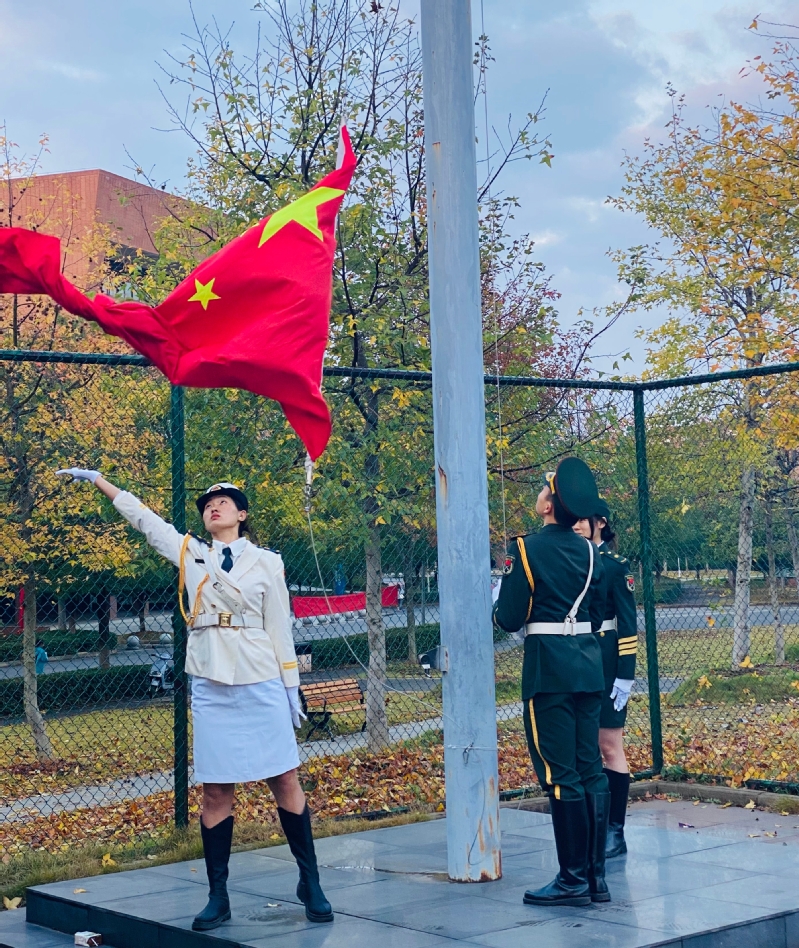 本次升旗仪式在各部门的组织和配合下圆满完成。忆往昔峥嵘岁月,擎起先辈们用鲜血染红的旗帜,望今日晴空朗朗,青年们的爱国之情漫溢于山海,青年学子励志做栋梁