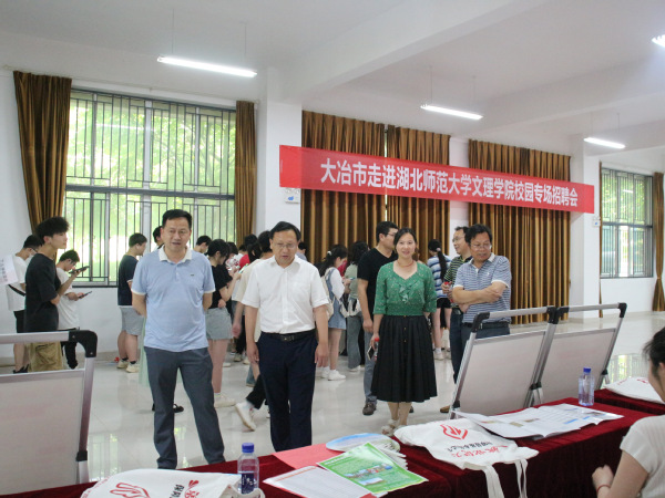 本网讯 (通讯员 肖劲光 拍摄 梁宏滨)为进一步促进开云(中国)毕业生高质量充分就业,深化政校企三方合作,6月13日下午,开云(中国)与大冶市人力资源与社会保障局、大冶湖高新技术产业开发区联合开展2023年“才聚荆楚·百县进百校”就业促进专项行动。校党委书记杨邓红、党委副书记杨之毛、副院长王胜国现场指导工作。